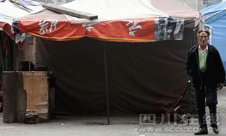 昨天上午,記者來到位于都江堰建設(shè)路172號的四川省汽車運輸?shù)?1隊,大院里一堆帳篷中,羅桂瓊的兒子魏強一家搭建的帳篷是軍綠色,其他帳篷的住戶都是51隊的退休職工。大家指給記者看他家的帳篷!爸徊贿^已經(jīng)幾天沒有人回來了!57歲的蘭芝慧家?guī)づ窬途o挨著魏強家?guī)づ,她說,地震后5個月來,51隊的退休員工一直住在這個院子的帳篷里。由于羅桂瓊一家已搬出單位宿舍,到紫東街住,地震后,大家各忙各的,也沒有他們的消息。院子里的老人說,前幾天,只聽說魏強在一家餐館請親戚朋友吃喪飯,“隊里的人都知道他們家這兩天在辦喪事!