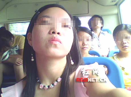 網友“冷秋香”在公交車上,仰望45°的自拍。