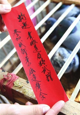 原本發(fā)一條短信或是打一個(gè)電話,一分鐘就能搞定的事情。為何這么大費(fèi)周章,要用飛鴿傳書的形式呢?何偉琪介紹,古人就是利用烽火狼煙、繩結(jié)、信鴿等方式來遞信息的,而飛鴿傳書更是古代武林界重要的傳統(tǒng)儀式。在通信日益發(fā)達(dá)的今天,飛鴿傳書也只是對(duì)“傳統(tǒng)”的演繹。何偉琪說:“如果效果不錯(cuò),四川武林界將把這種傳統(tǒng)通信方式繼續(xù)沿用下去!