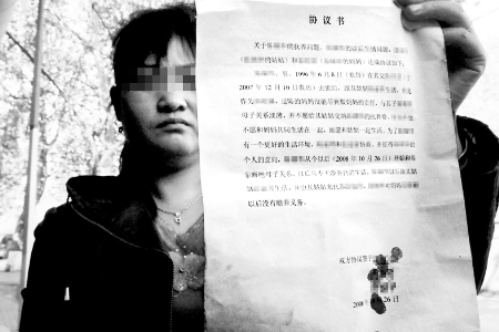 因為這份協議不合法,鄭州市公證處不予公證。為了讓協議具有效力,劉紅和王麗在簽字上面按上指印。按上指印后,王麗突然咬著嘴唇,淚珠大顆大顆掉了下來。她匆匆在一張協議上按了指印后,死活也不愿在另外兩張上面按了,并開始大罵她的丈夫王濤。門外圍了一圈鄰居。大家七嘴八舌勸道:“何必這樣呢,兩家人商量個辦法,一塊來照顧孩子。不管怎樣,要為孩子想想。”王濤把其他人往店外推:“沒事沒事,放心吧,她現在不按,回頭我會勸她!