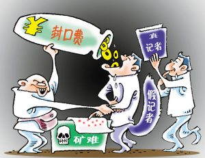 假記者之所以大行其道,屢屢敲詐成功,甚至能堂而皇之地領(lǐng)取“封口費”,是因為有隙可乘,比如礦難發(fā)生后的“瞞報”,就給了他們可乘之機。所以,要針對這次礦難打假,要打的不光是假記者。(莊嚴)