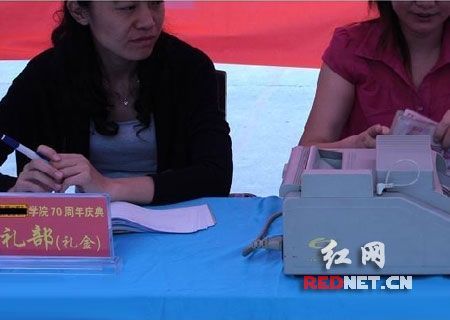 湖北民族學院七十周年校慶會場擺放的點鈔機
