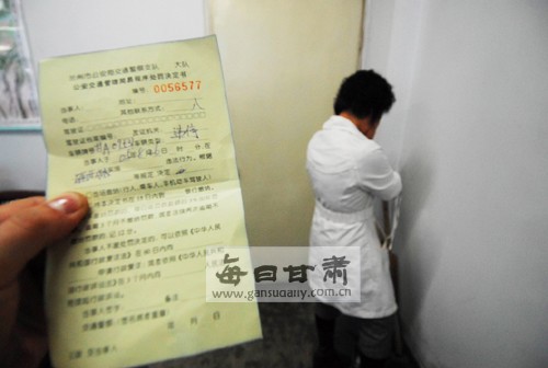 當(dāng)天下午4時(shí)30分,記者聞?dòng)崄?lái)到城關(guān)交警大隊(duì)教導(dǎo)員辦公室,一名戴著眼鏡的白衣女子正低頭坐在辦公室沙發(fā)上,見(jiàn)到記者,女子立刻用雙手捂住面龐。教導(dǎo)員王永剛向記者講述了事件的經(jīng)過(guò)。當(dāng)天下午4時(shí)許,這名姓趙的中年女子推開(kāi)教導(dǎo)員辦公室大門,開(kāi)口便稱是“新華社甘肅分社”的記者,她從包中拿出一摞罰單,上面記錄著車號(hào)為甘A55893和甘A09531兩車自2005年到2008年3年中的30余次違規(guī)記錄,罰單加上滯納金金額已逾3萬(wàn)元。隨后,該女子大言不慚地說(shuō):“新華社在宣傳報(bào)道方面一直與城關(guān)交警大隊(duì)配合得不錯(cuò),希望給個(gè)面子把罰單消了!”