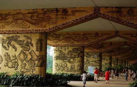 據(jù)有知情網(wǎng)友透露,這座“史上最牛的橋墩”來自四川德陽市鼓樓下的成綿高速高架橋橋墩。橫亙在鼓樓與廣場之間的高速公路橋墩,成了設(shè)計者發(fā)揮想象的地方。設(shè)計者將28個橋墩進行裝飾改造,以仿古浮雕銅板扣畫和仿敲銀浮雕扣版畫及大型仿烙鐵裝飾畫體現(xiàn)德陽6縣(市、區(qū))歷史文化、風景名勝、人文景觀及重裝基地風采。整個壁畫長廊立體感極強,既抽象又寫實,色彩明朗,極具現(xiàn)代藝術(shù)風格。彩虹橋、石刻、白馬關(guān)、龐統(tǒng)墓、倉山大樂、黃繼光紀念館、三星堆、年畫館、劍南春……德陽的標志一一在此得以展現(xiàn),每個篇章把歷史文化、風景名勝、人文景觀融為一體,形成一個完整的壁畫群落,壁畫面積達2309平方米,是整個德陽地區(qū)景點的微縮!笆飞献钆5臉蚨铡庇2007年初推出,并受到當?shù)仡I(lǐng)導的表揚。