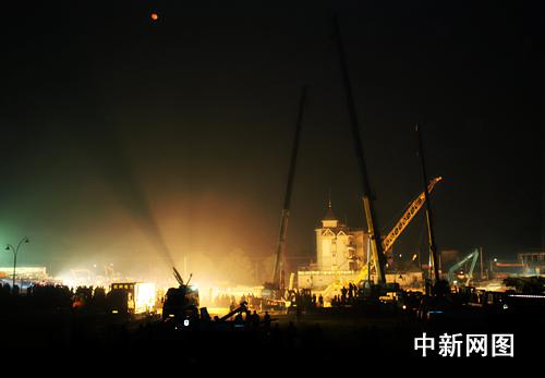 事故現(xiàn)場(chǎng)調(diào)集1000多人的隊(duì)伍,漏夜救援。攝影:張兆嶺