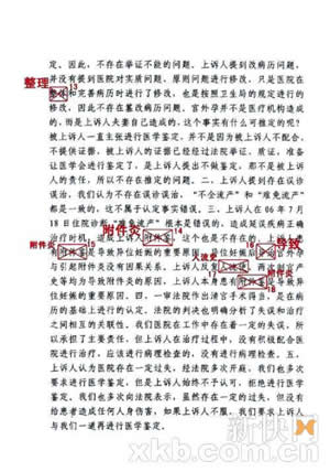 記者在判決書掃描件中的確發(fā)現(xiàn)不少筆誤,比如把“導(dǎo)致”寫成“導(dǎo)治”、“人工流產(chǎn)”寫成“工人流產(chǎn)”、“附件炎”寫成“附件驗”和“附件鑒”、“被上訴人”寫成“被上訴們”、“認為”寫成“真?zhèn)巍,“拒查”寫成“?jù)查”、“整理”寫成“整體”、“人流史”寫成“人流使”等。