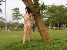 倪先生說,顧客辦完卡后,該攝影中心便將女模特出租給顧客,這些模特可以以裸體或者人體彩繪等形式擺出各種造型來供拍攝者拍攝。“前些天,攝影中心為了宣傳,就邀請來了一位女模特在萬綠園脫光了衣服,現(xiàn)場擺出各種姿勢供人拍照,而我們就現(xiàn)場發(fā)傳單、拉客戶! 倪先生認為這是一種淫穢行為,所以就提出了辭職。然而,工作了10多天,他應(yīng)得的工錢,攝影中心卻不肯給他,所以他只好向媒體舉報。倪先生還向記者提供了一張該攝影中心的廣告宣傳單,上面印上了很多的裸體少女,神情各異。