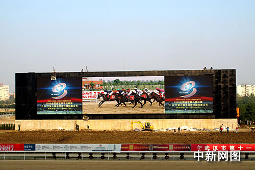 中新網(wǎng)武漢11月21日電 (劉鴻清 王一笑)顯示面積480平米、造價1400萬元人民幣的LED戶外電視顯示大屏,21日在武漢東方馬城國際賽馬場通過驗收,眾多技術專家現(xiàn)場感受了LED大屏帶來的強大視覺沖擊。