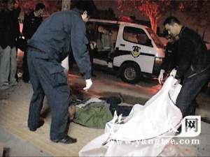 民警正在打包尸體。曹盧杰攝(圖片來源:揚子晚報)