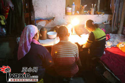 周末的時(shí)候小童和小丹在街頭要錢,平日里上完課后就在昏暗的燈光下學(xué)習(xí)。
