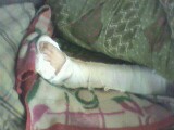 劉先生說,他看到X光片顯示,朱全超的腳踝已骨折。目前村民自發(fā)組織了1000多元的捐款,在勉強維持著朱全超的用藥。秋渠鄉(xiāng)衛(wèi)生院的醫(yī)生說,因為傷口感染較嚴重,如不能得到更好的治療,朱全超的一只腳可能要面臨截肢。熱心的劉先生用手機將現(xiàn)場的情況拍照發(fā)給記者,呼吁相關(guān)人士能關(guān)注這個不幸的家庭,為他們送上力所能及的幫助。