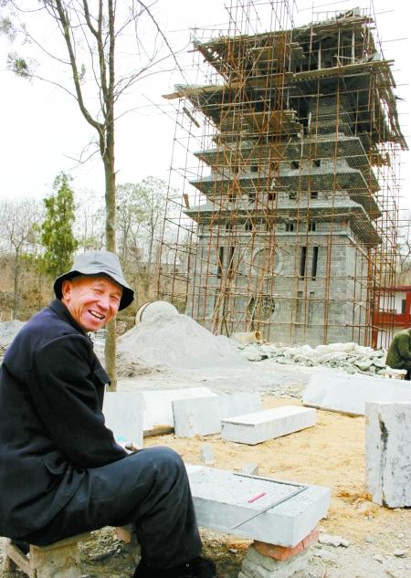 “今年年底,投資200多萬元的鐘鼓樓即將竣工。目前,洞林寺的恢復(fù)重建資金已有近千萬元。你看大雄寶殿上的那個頂?shù)脑煨褪遣皇莿e具一格,這是由方丈釋永信設(shè)計的……”解說中,洞林寺法師釋延爍一臉幸福。