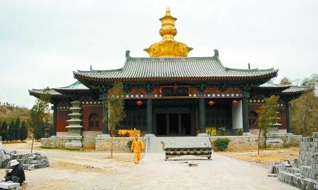 同是少林寺下院的滎陽市賈峪鎮(zhèn)洞林寺目前也正在緊張施工中。記者在現(xiàn)場看到,方鼎式的山門上方已經(jīng)鐫刻上了釋永信手書的“洞林大覺禪寺”六個鎏金大字。軸線北方100米仿印度風(fēng)格的大雄寶殿也已投入使用。