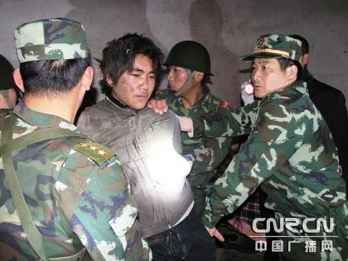 20時(shí)20分,案犯又要求其母送打火機(jī)吸煙。20時(shí)22分,在聯(lián)指授意下,其母讓案犯開(kāi)了燈,并告之家里沒(méi)有任何人,案犯放松警覺(jué),準(zhǔn)備開(kāi)門出來(lái)。盧參謀長(zhǎng)示意突擊組做好突擊準(zhǔn)備,在案犯開(kāi)門一剎那,孫參謀一手用強(qiáng)光疝氣燈照住案犯雙眼,趁案犯尚未反應(yīng)過(guò)來(lái),一手持應(yīng)急棍將案犯打倒在地,參戰(zhàn)官兵迅速將其生擒并帶離現(xiàn)場(chǎng)。
