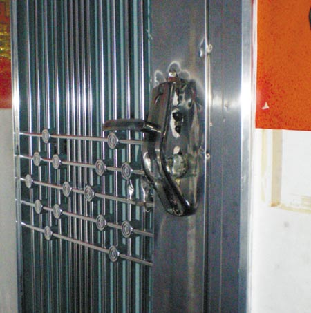 記者沿樓梯上到了這個房間,看到它的門鎖已經(jīng)壞了,估計是行動時警察破門時撬壞的。鐵門下面擺放著兩對拖鞋,記者試著敲了兩下門,里面有個女人來開門。當(dāng)記者問她“前天晚上警察搜出毒品的是不是在這個房間”時,對方用電白土話連說:“不知道!”記者再下到一樓,兩個正在散步的婦女向記者確認(rèn):出事的就是那個房間。