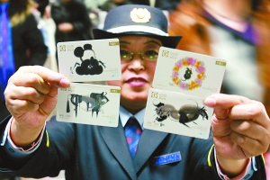 由著名藝術(shù)家韓美林設(shè)計(jì)的北京地鐵首套紀(jì)念文化卡票票冊,周六開始在除機(jī)場線外的7條地鐵線路各站發(fā)售。地鐵公司表示,本次發(fā)行的單程文化卡票,可于2008年12月6日到2009年3月1日前任意在地鐵運(yùn)營各線(機(jī)場線除外),各站當(dāng)日使用一次,卡票在出站插卡后,閘機(jī)會自動“吐出”紀(jì)念卡票,不影響乘客收藏。(記者 韓萌 左林 攝影)
