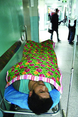 與流浪漢相距不到十米,另一擔(dān)架上,一名中年男子躺在上面雙眼緊閉!八胀酰瑥男绿﹣頋(jì)南打工的。”中年男子的一名同伴告訴記者,在他身旁,還放著兩堆行李。原來這名男子是王師傅的老鄉(xiāng),當(dāng)天下午他和另外一人從新泰來濟(jì)打工,王師傅負(fù)責(zé)接站,“我們約好,在山大路上見。”