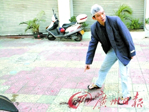 昨天上午,記者接報(bào)料后趕到事發(fā)地三水西南街道三達(dá)路冰皇咖啡館門前,一瘦小個(gè)男子頭部打著紗帶,血跡印紅了紗布,男子的牛仔褲上仍有血跡,地上有一攤已經(jīng)干了的血跡及零星血點(diǎn)。該男子告訴記者,他就是昨晚被打之人,他叫蘇成營,今年34歲,是肇慶封開縣長按鎮(zhèn)人,在三水做裝修工作。