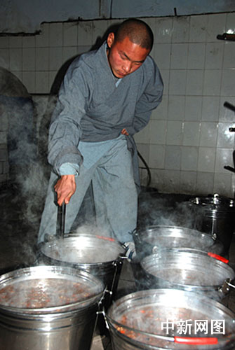 中新網(wǎng)鄭州12月31日電(記者 朱曉娟)為確保臘八節(jié)施粥順利進(jìn)行,12月30日中午少林藥局的師父們便在少林伙房試煮五行八寶粥。