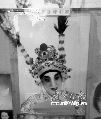位于龍津東路708號—712號的榮華樓,是廣州現(xiàn)存少數(shù)的百歲老茶樓之一。昨日下午,榮華樓的樓梯口處貼著云峰粵劇團演員的劇照,團長白×峰武生打扮的劇照頗為搶眼,徒弟何×瑩則是一張素裝照。茶樓服務(wù)員介紹,云峰粵劇團在此駐唱兩年多,“峰哥”是團長,擅長武術(shù),尤其是螳螂拳,云峰劇團每天最少上一場折子戲,吸引不少廣州老戲迷來捧場。