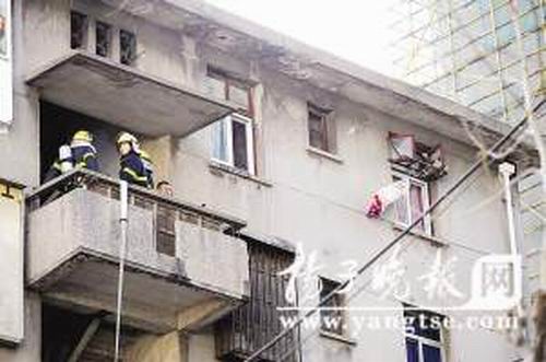 昨天下午2點半鐘左右,在南京下關區(qū)鐵路北街新民村33號住宅樓前圍了許多群眾,警方在通往居民樓的通道外拉起了警戒線,禁止無關人員進入,在警戒線內(nèi)的地上放著一瓶液化氣,此時消防隊員仍在來回穿梭地忙碌著。住在四樓的一位居民稱,著火的是6樓的一戶人家,好像是有人縱火。如果不是5樓的一位大媽及時發(fā)現(xiàn)大聲喊叫,大家還都不知道。