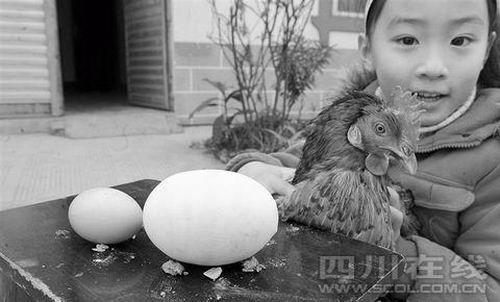 對(duì)此,四川農(nóng)業(yè)大學(xué)動(dòng)物科技學(xué)院教授劉益平說,“一般這樣大的異形蛋是在雞蛋已成型后被輸回去的,很可能是蛋包蛋。”