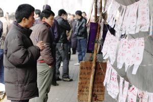 “炸油條,第一個月1400元,干得好再漲工資。”在溫州路旁,一名手舉招聘啟事的中年男子對身邊的求職者說。面對這份待遇優(yōu)厚的工作,不少人上前詢問,可一聽對方是個小店且每天的工作量不確定時,馬上打起了退堂鼓,多數(shù)人擔(dān)心不能及時領(lǐng)到工資。“說的好聽,就怕到時候扣工資的借口更多!眮碜砸仕那舐氄邉Ⅵ握f,自己想找一份月薪1200元、管吃住的工作,這樣一年能攢下近萬元錢。