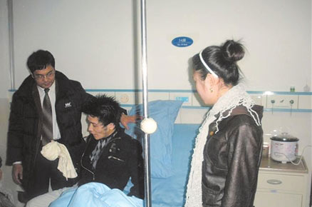 2月2日,都江堰心理志愿者劉猛等人到病房看望了母廣翔,劉猛捐了1000元醫(yī)療費(fèi)救急。次日一大早,劉猛等再次造訪病房,這次他們帶去的不是捐款,而是一次實(shí)實(shí)在在的“心理訪談”。