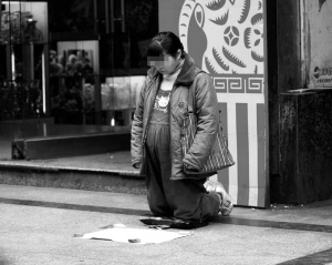 昨日,記者在某網(wǎng)站見到了這個名為《她騙取了人們的善意?》的帖子,發(fā)帖人“蕭二哥”附上了兩張照片。從照片可以看到,一名戴眼鏡穿藍色羽絨服的中年孕婦正跪在地上乞討,表情凝重。而令網(wǎng)友們詫異的是,該婦女穿的鞋子是一雙NIKE運動鞋。網(wǎng)友“贊”表示:乞討者的“裝備”越來越好了。