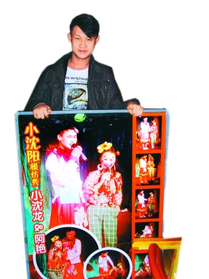 每天晚上8時(shí)11分,小沈龍都會(huì)和同伴們?cè)诮鹌计级宿D(zhuǎn)劇場(chǎng)開(kāi)演。這幾天因?yàn)檫^(guò)年的緣故,小沈龍他們通常會(huì)表演到晚上11時(shí)。因?yàn)樾∩蜿?yáng)火爆的緣故,在金萍萍二人轉(zhuǎn)劇場(chǎng)買票的時(shí)候,工作人員都會(huì)提醒:“我們這里有一個(gè)小沈龍,和小沈陽(yáng)一樣一樣的!痹谝粡埡(bào)上則印著“小沈陽(yáng)模仿秀——小沈龍”。