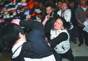 昨日9時(shí)30分,秀水街市場一樓層經(jīng)理帶著管理人員逐一實(shí)施封攤停業(yè)整頓,但剛到第一家攤位,就遭到商戶圍攻。