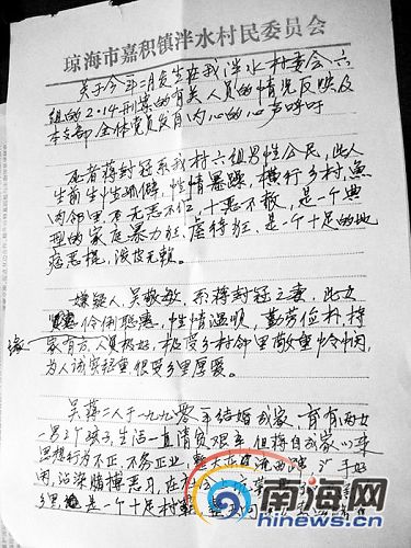 案發(fā)后,吳敬梅到轄區(qū)瓊海公安局城北派出所投案,現(xiàn)被關(guān)押在瓊?词厮。吳敬梅的女兒和12歲小兒子,不得不離開(kāi)家,到村委會(huì)安排的臨時(shí)房子里暫住。(李域)