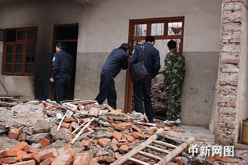 消防隊(duì)員到達(dá)現(xiàn)場時看到坍塌現(xiàn)場一片狼藉,到處是破碎的磚瓦,樓房第一層三間房子均被大量磚瓦埋壓,其中位于中間部位的房子坍塌最為嚴(yán)重。經(jīng)詢問得知,這就是兩名幼兒被埋壓的房間。