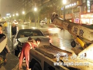 前日晚,江北歐式一條街,一輛價(jià)值60萬(wàn)元的尼桑豪華跑車(chē),撞上了路燈電桿,車(chē)頭被撞得四分五裂。事后,駕駛員遲遲不露面,站在不遠(yuǎn)處旁觀,在交警的多次盤(pán)問(wèn)下才站了出來(lái)。