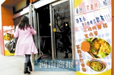 “一碗面7元,不少市民都覺得貴,但蘇格蘭打鹵面16元一碗,很多人都愿意買!憋埖昀习逋蹀葰g說。昨日中午12時(shí)許,一個(gè)5歲的女孩拉著媽媽的手,看到豎在粥屋門口的宣傳海報(bào)后,興奮地告訴媽媽:“這是小沈陽的菜!辈灰粫(huì)兒,5名男子來到粥屋,將面前的菜單一推,直接點(diǎn)蘇格蘭打鹵面。