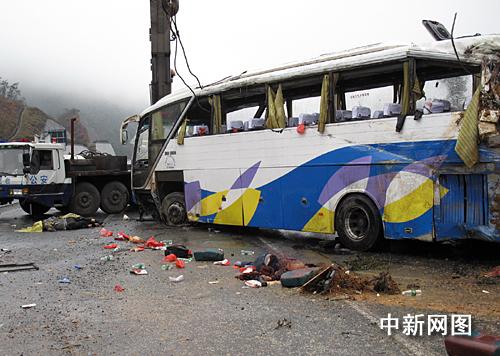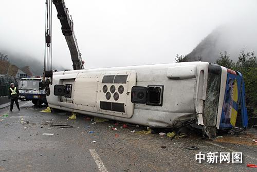 據(jù)韶關(guān)警方稱:這輛牌號(hào)為粵AC00七九號(hào)豪華大客車(司助兩人),是六日凌晨五時(shí)從廣州羅崗搭載游客四十人(其中一名導(dǎo)游)前往湖南衡山的。于八點(diǎn)五十分途經(jīng)京珠高速公路粵北段北行三十七KM處時(shí),車輛碰撞右側(cè)花基后向左側(cè)翻,造成駕駛員岑權(quán)(男)及兩名乘客(一男一女)當(dāng)場(chǎng)死亡,無(wú)人員重傷,十七名乘客輕微傷(均已送醫(yī)院檢查治療)的交通事故。