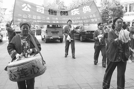 昨天上午,鄭州市二七廣場附近,一家公司扯出條幅稱進(jìn)行“倒閉”慶典,數(shù)十人擂著腰鼓。“聽說過搞‘開業(yè)’、‘結(jié)婚’慶典什么的,還沒有聽說過開業(yè)搞‘倒閉’慶典的!眹^市民李先生不解地說。