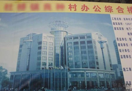 近日,一組在網(wǎng)絡(luò)上號(hào)稱“史上最牛的村辦公樓”圖片在網(wǎng)上熱傳,一張圖片展示了一幢主體框架已經(jīng)建好的雄偉大樓,另一張圖片是該大樓建設(shè)的效果圖,效果圖中的大樓相當(dāng)豪華,高達(dá)9層。令網(wǎng)友詫異的是該幢大樓竟然是一村辦公大樓,難怪發(fā)帖者稱該樓為史上最牛的。