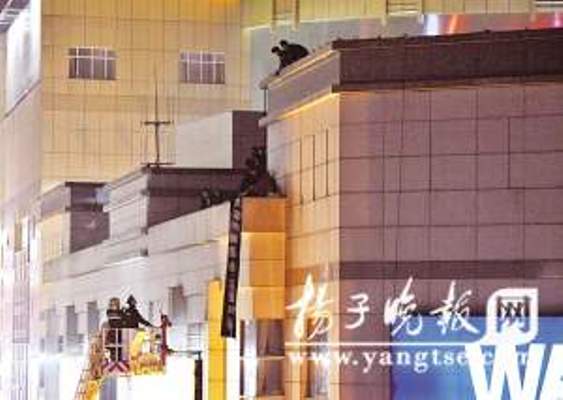 昨天下午5點多鐘,在新街口萬達廣場逛街的市民們發(fā)現(xiàn)萬達的樓頂竟然有一個穿著紅衣服的女子坐在平臺邊緣,稍不注意,就有可能墜樓。有熱心市民向警方報警后,“110”特巡警以及轄區(qū)淮海路派出所的民警迅速趕到了現(xiàn)場展開營救。消防部門也隨即接到命令到現(xiàn)場增援,消防官兵在地面上將氣墊打開,防止意外發(fā)生。一輛云梯消防車也在事發(fā)后半小時內趕到了現(xiàn)場。