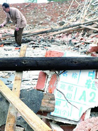 上午10時(shí)許,記者在爆炸現(xiàn)場(chǎng)看到,一個(gè)6平方米的火藥中轉(zhuǎn)車間已被夷為平地,瓦礫堆上散落著幾個(gè)燒焦的藥桶,附近的樹枝上掛著瓦礫碎片。所幸的是,距中轉(zhuǎn)車間20多米外的一個(gè)制造車間未受殃及,里面的工人安然無恙。