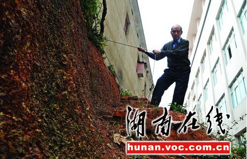在湖南工程職業(yè)技術(shù)學(xué)院,記者采訪了參與前期拆遷事宜的朱姓工會主席。談及此事,他也是不斷搖頭!瓣P(guān)于房屋的補償我們是傷透了腦筋,老吳家不斷加價,學(xué)院無所適從!敝旖榻B說,與老吳家一墻之隔的是學(xué)院新建的教學(xué)樓,因為拆遷受阻,教學(xué)樓只好修改規(guī)劃!昂笠屏私5米,看起來歪歪的!