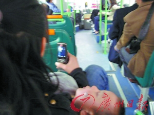 “前幾天下午,陰冷天氣,廣州至佛山西樵251路的巴士上”。發(fā)帖者隨后貼出了7幅照片。記者從照片中看到,這的確是一輛公交車,從車前門處隱約可見的刷卡機(jī)可以判斷,這輛車應(yīng)當(dāng)是佛山的公交車,但是否是251路公交車則不能確定。