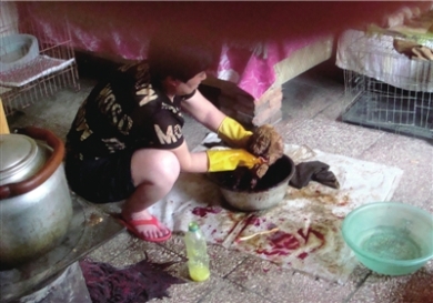 貴婦狗每染過(guò)一次顏色就加深一些,漸漸接近褐紅色,魏某笑著說(shuō):“你看神奇吧,貴婦就慢慢變成泰迪了。”他說(shuō)現(xiàn)在狗市上做過(guò)活的狗很多,但是做完后都不會(huì)拿到狗市里的正規(guī)店鋪里賣,只在散市賣!斑@樣賣出去人找不到你,比較保險(xiǎn)”。