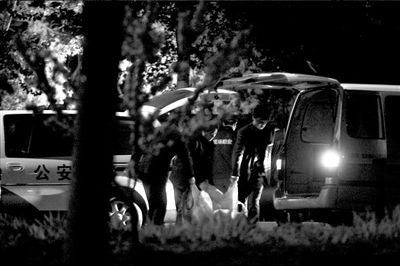 前天下午6點(diǎn),在學(xué)校西側(cè)的小樹(shù)林內(nèi),學(xué)生家長(zhǎng)和同學(xué)發(fā)現(xiàn)了兩具尸體。當(dāng)晚,樹(shù)林旁的路邊停了十余輛警車,多名警察手持電筒、牽引著警犬在樹(shù)林內(nèi)勘察,并陸續(xù)從現(xiàn)場(chǎng)提取相關(guān)證據(jù)帶離現(xiàn)場(chǎng)。由于現(xiàn)場(chǎng)太暗,警方還調(diào)來(lái)一輛照明警車。昨天零點(diǎn)50分左右,兩具尸體被運(yùn)離現(xiàn)場(chǎng)。