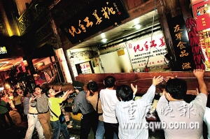 昨晚8時(shí)16分許,洪崖洞傳統(tǒng)風(fēng)貌區(qū)四樓天成巷438號(hào)至440號(hào)之間一長(zhǎng)8.27米、寬1.1米的商鋪飛檐及附屬物發(fā)生垮塌,砸傷5人,其中傷勢(shì)較重者1人。