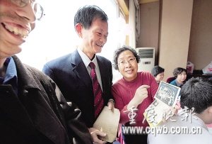 64級(jí)1班學(xué)生、在渝中區(qū)統(tǒng)戰(zhàn)部工作的王有惠為老師獻(xiàn)上一副題字,5班一位男學(xué)生奉上一幅書畫!斑@不是當(dāng)年的窮孩子馬慶嗎?”王忠篤說,馬慶父親早亡,母親獨(dú)自供養(yǎng)馬慶三兄弟,生活很困難。學(xué)校想辦法給他提供了每月8元的助學(xué)金,老師們也幫他湊生活費(fèi)。“校長(zhǎng),我剛從渝中區(qū)商委主任和總工會(huì)主席的位置上退下來,以后會(huì)常來看您。”61歲的馬慶含淚道。