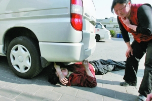 “我的鼻子、手、肩部都被他們打傷了!贝笸歪t(yī)院內(nèi),胡先生躺在一輛面包車底下要求轉(zhuǎn)院治療,其鼻子和手及兩肩膀處均有傷痕。他說,他與舅舅在與城管隊員搶奪三輪車過程中,被城管隊員連人帶車強行架上執(zhí)法車輛,其間他面部、肩膀等部位受傷。