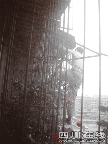 昨日早上6點(diǎn)過(guò),成都站北東路144號(hào)居民陳先生被一陣嘈雜聲驚醒,“有賊娃子上來(lái)了!”樓下掃地的萬(wàn)婆婆大聲呼喊。陳先生走出臥室,赫然發(fā)現(xiàn)書房的防護(hù)欄外,站著一個(gè)身穿黑色外套的中年男子……