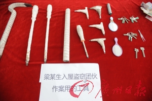 他們的作案和“偵察工具”也不少,比如有特制的小鏡子,就是用來看有無暗鎖,以此判斷有沒有人在家。他們外出作案時都拎著個電腦包,其實(shí)包里裝的都是小撬棍、螺絲刀、自制萬能鑰匙等作案工具。