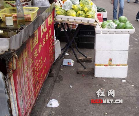 目前雙方恢復(fù)營(yíng)業(yè),“敏感地帶”仍擺放著兩壘西瓜